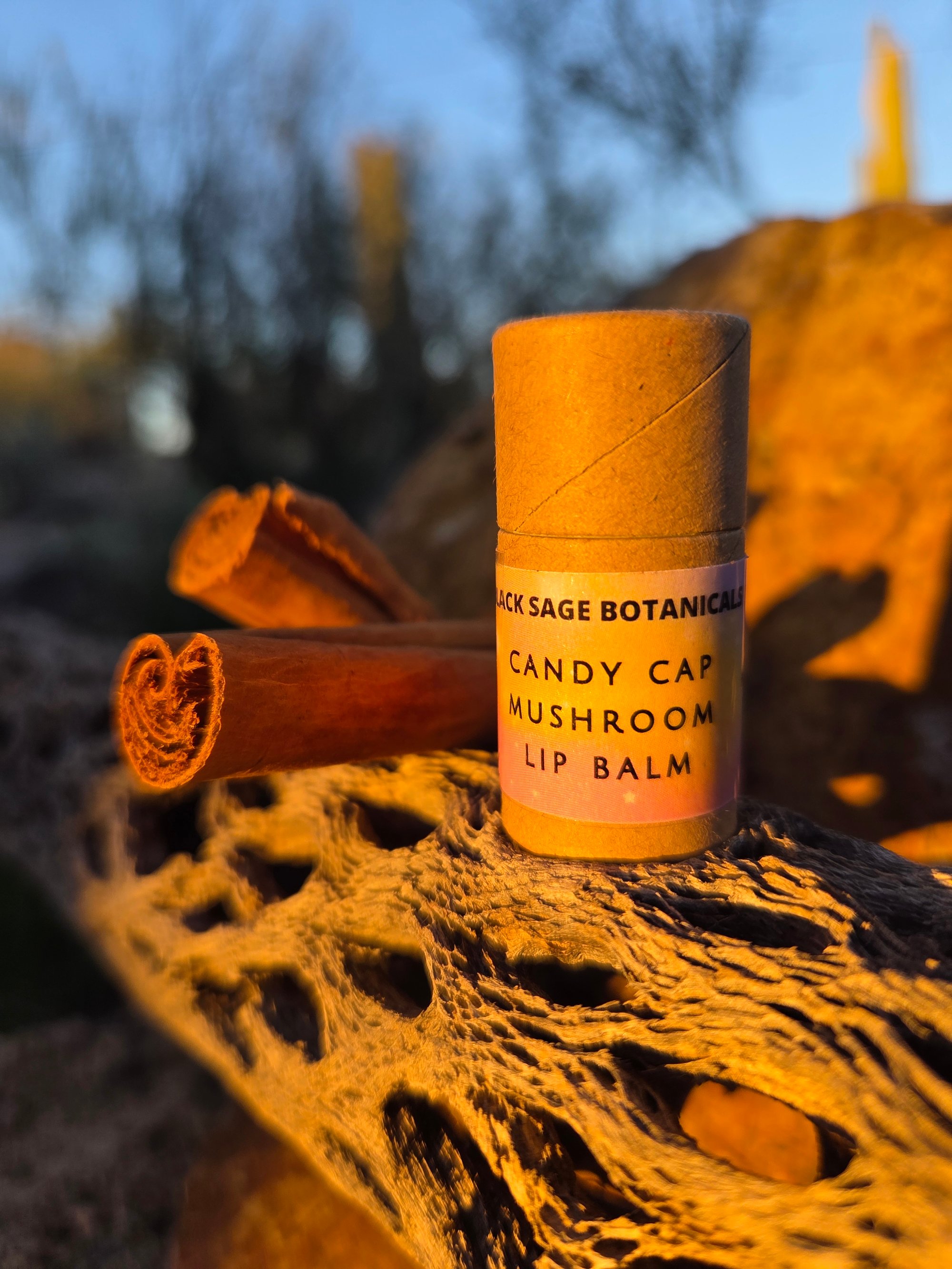 Luscious, truly moisturizing mango butter and high-grade, organic Arizona jojoba oil are thoughtfully infused with mapley California-harvested candy cap mushrooms, a touch of cinnamon, and beeswax from a friends apiary in California.